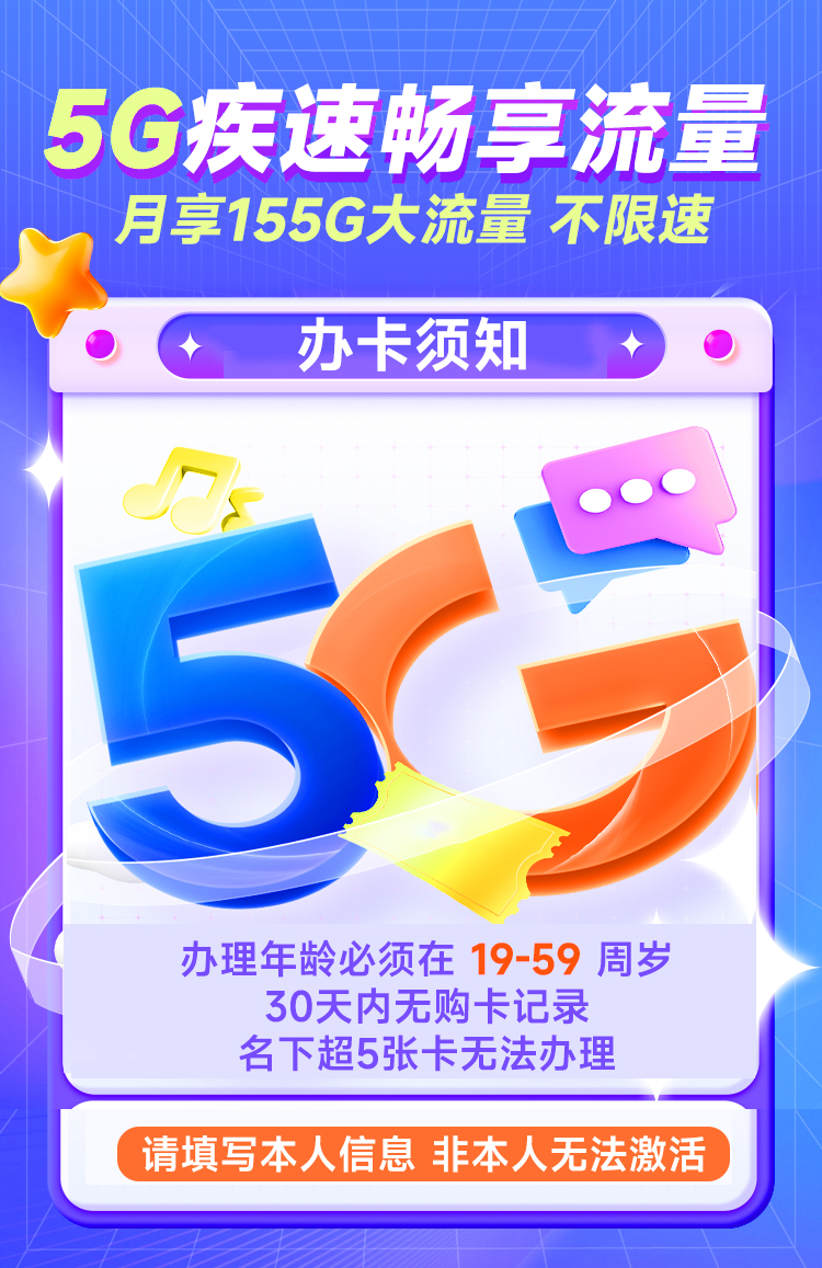 电信流量卡纯流量上网卡大流量手机卡不限速5g新款全国通用3883